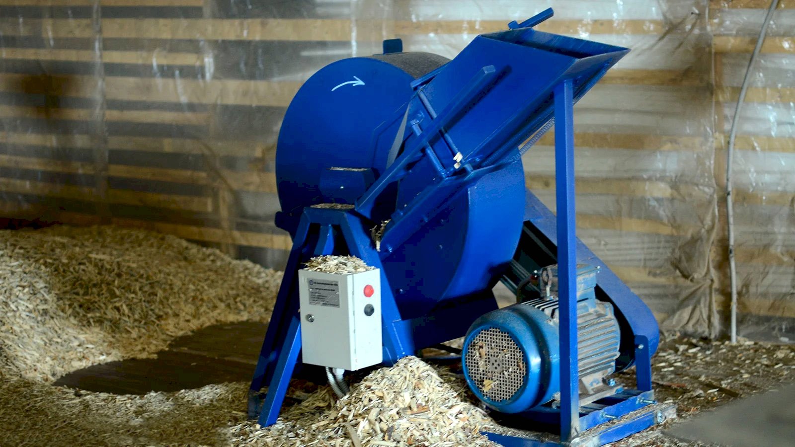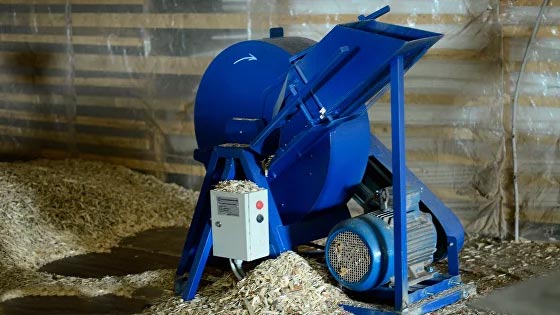 Для измельчения древесины мы приобрели профессиональный щепорез для получения щепы нужных размеров и специальной игольчатой формы.